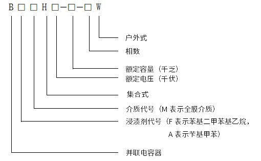 表示:浸渍苄基甲苯,全膜介质的集合式并联电容器,额定电压为11/√3kV,额定容量为8000kvar,三相,户外式。
