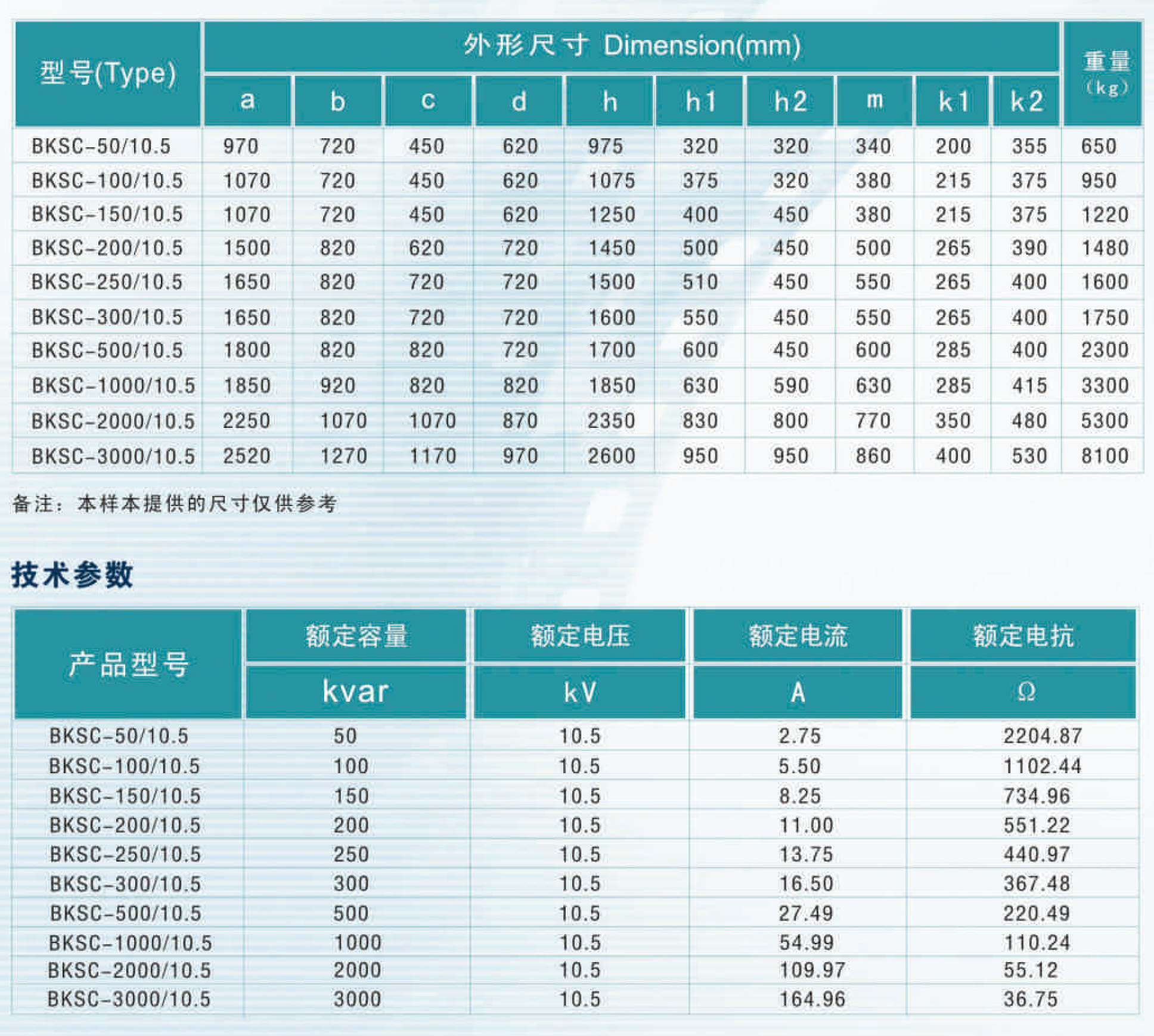 10kV级BKSC型并联电抗器专用于电缆比较集中的电力系统、铁路系统等各高压并联回路,并联连接于供电线路,分段补偿线路的容性电流,提高系统功率因素,节约能源、提高电力系统的稳定性和可靠性。
