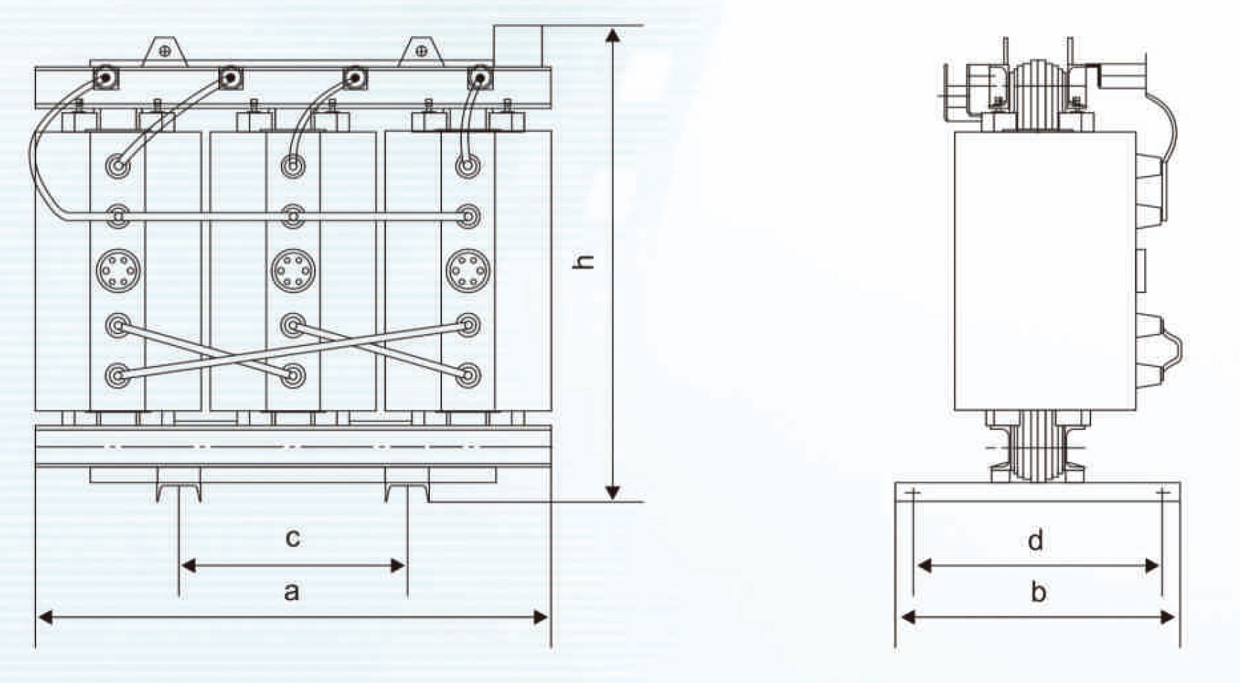 电压等级35kV及以下,容量为3500kVA及以下环氧树脂浇注干式接地变压器。